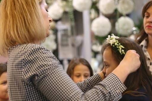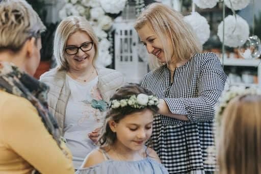 Podczas takich spotkań dziewczynki mogą nie tylko zobaczyć różne propozycje wianków, ale także przymierzać je, porównywać i wybrać dokładnie tę wersję, w której czują się najpiękniej i najbardziej wyjątkowo. To ważny moment – dbamy o to, aby każda młoda dama czuła się swobodnie, komfortowo i miała realny wpływ na wybór ozdoby na ten niezwykle uroczysty dzień.