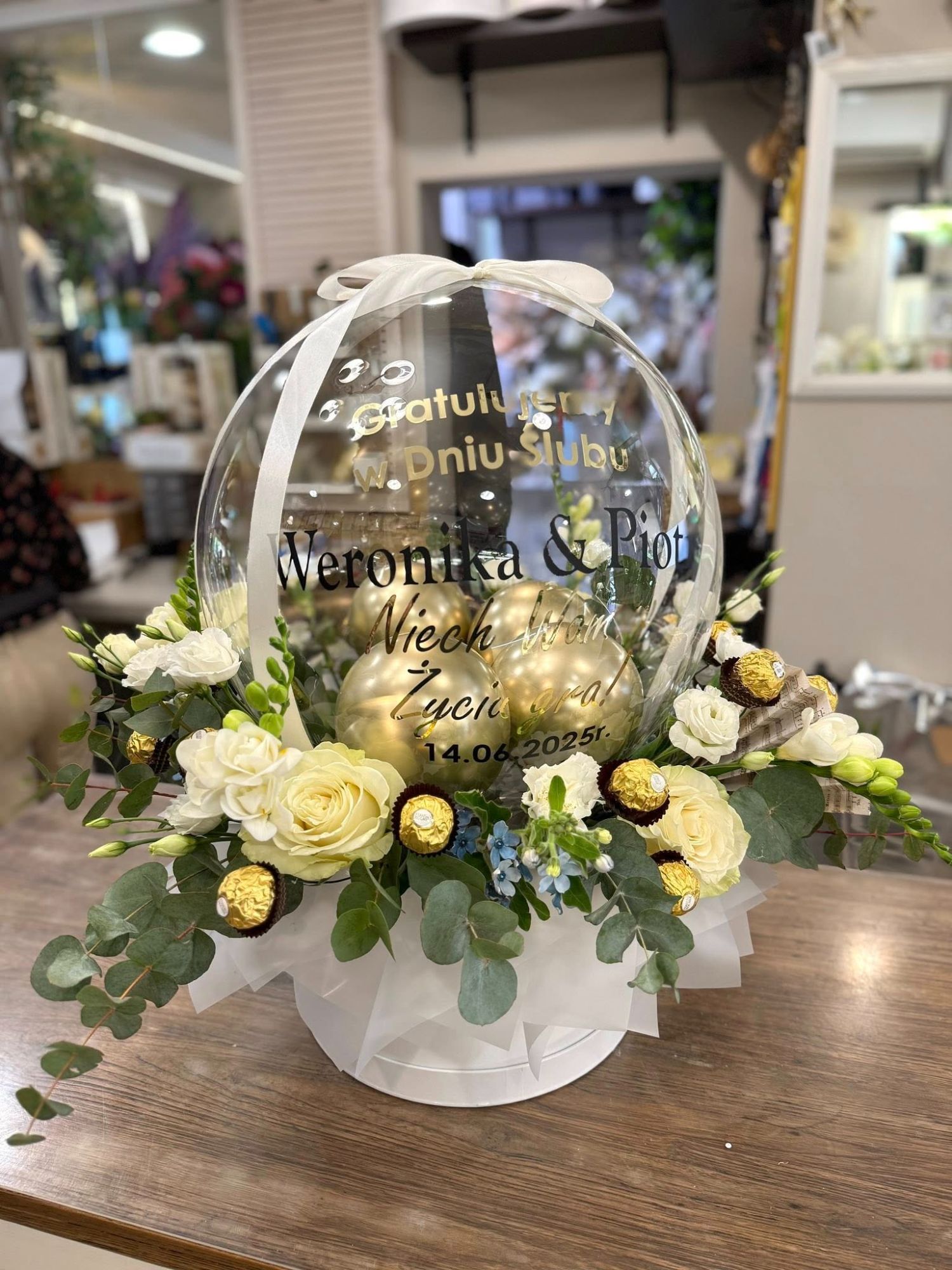 • Flowerbox z balonem ślubny